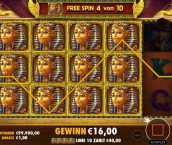 Beim Aufbau gibt es nichts neues. Das 5×3 Spielfeld ist irgendwo in einer goldenen Grabkammer untergebracht. Über dem Spielfeld ist der Titel, unter dem Spielfeld das bekannte Pragmatic Bedienmodul. Links davon kann man die Ante-Wette einschalten, rechts die Free Spins kaufen. Hier gibt es keine Überraschungen.